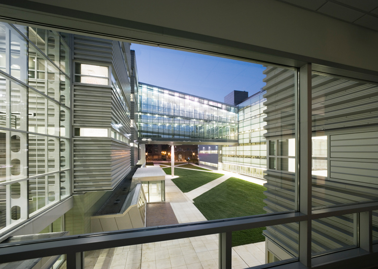The new engineering facility for The Ohio State University is composed of three interconnected buildings – a dedicated laboratory facility, a classroom and faculty office building, and a student activities building. Enclosing a courtyard on three sides, the complex creates a new identity and distinct environment for the mechanical engineering department. Multiple entries to the courtyard promote its use as a gathering place, a connector to the campus and a venue for exhibiting student work. The design responds to the University context in material, quality and scale: campus-oriented façades are articulated in brick and stone, while courtyard-oriented glass curtainwalls reveal glimpses into the building and reinforce identity.