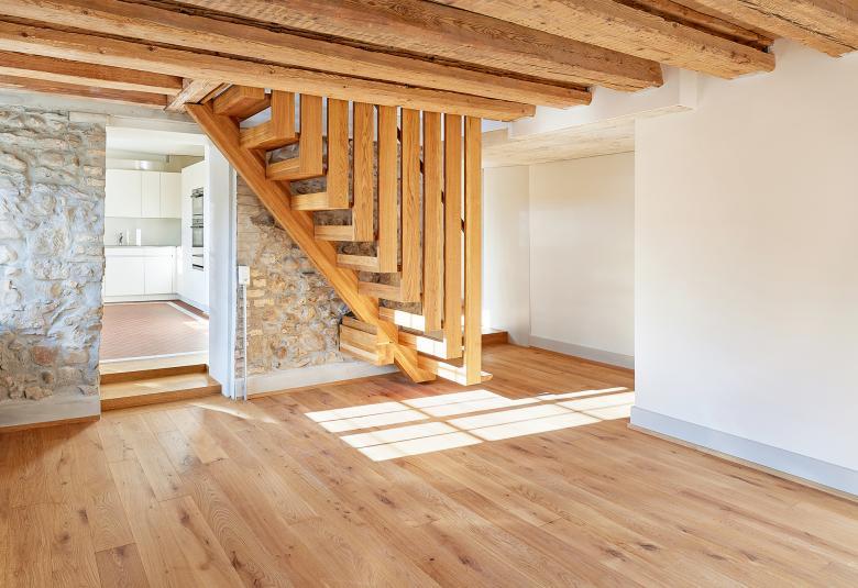Nachdem das Zunfthaus zur Saffran, aus einem Vorder- und mehreren Hinterhäusern bestehend. bereits einige Jahre zuvor mit einer grossen 5-Zimmerwohnung umgebaut wurde, sollte die Liegenschaft nun als Gesamtes aufgewertet werden, um auch die Erträge für den Unterhalt zu verbessern. Die Idee bestand darin, das vorhandene Treppenhaus am Krebshof zu verlängern und darüber alle neuen Wohnungen zu erschliessen. Dies hatte zur Folge, dass zusätzliche Durchbrüche in die alten Brandmauern gemacht wurden. Es entstanden 6 Altstadtwohnungen unterschiedlicher Grösse, Raumhöhe, Ausrichtung, Anordnung und Geschossigkeit. Die verschiedenen Niveaus der Geschosse und Hausteile sowie die Strukturen der trennenden Brandmauern und Aussenwände wurden zum Thema der Wohnungsgestaltung. Es galt attraktive Raumfolgen zu gestalten, um die historische Substanz bewusst erlebbar zu machen. Die Oberflächen wurden wo möglich und sinnvoll freigelegt, restauriert und sichtbar belassen. Die Böden und Decken mussten nach den geltenden Normen und Anforderungen ertüchtigt werden. Die Nasszellen, Reduits wurden als ablesbare Einbauten in die Räume gesetzt und die Kochzeilen als Wohnküchen offen konzipiert.