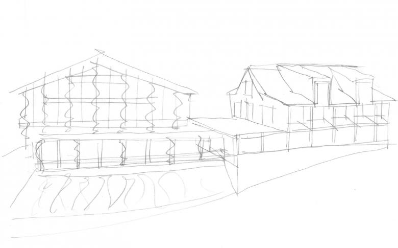Neben der Gastronomie und Hotellerie, soll auch gerade das Haus und die Architektur ein Zeichen setzen mit einem einladenden und stolzen Auftritt, mit einem überraschenden Raumangebot, mit robust-nachhaltigen Materialien und nicht zuletzt mit einem sinnigen und wegweisenden Energiekonzept.
