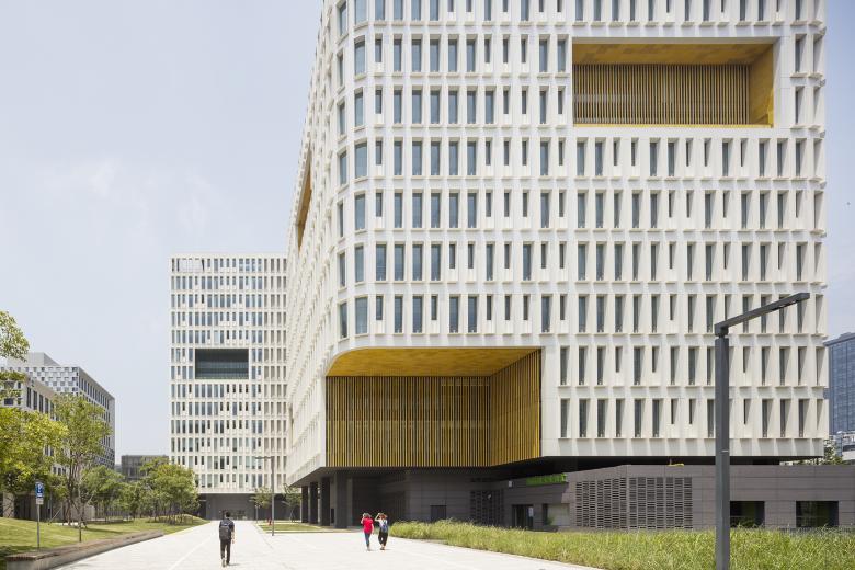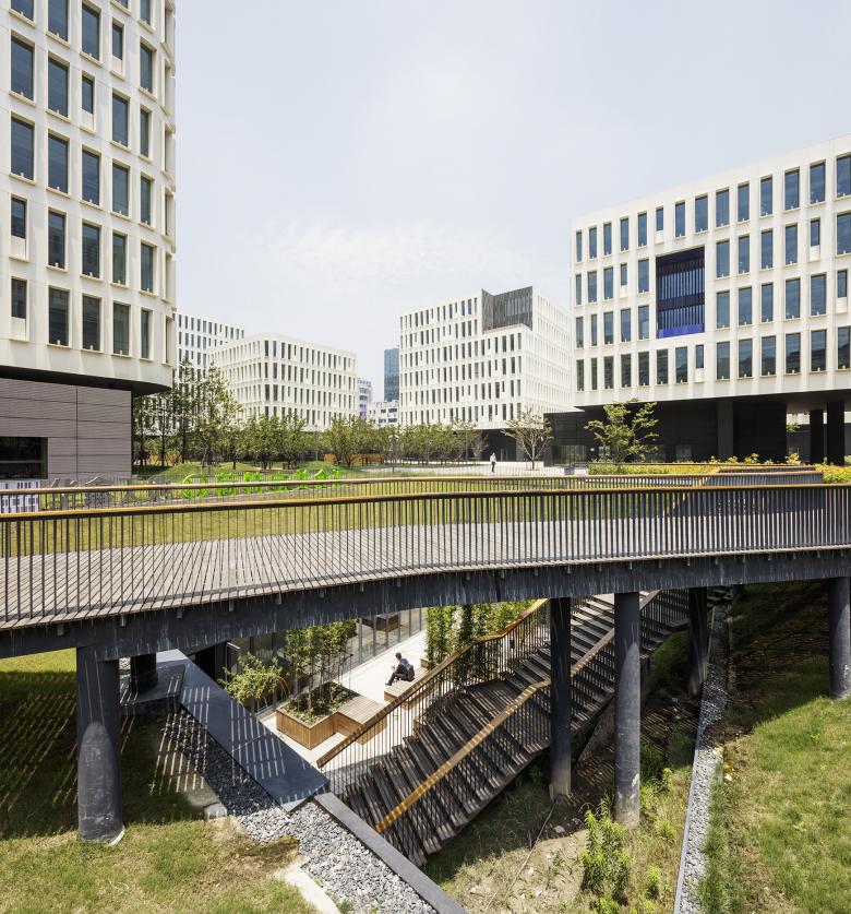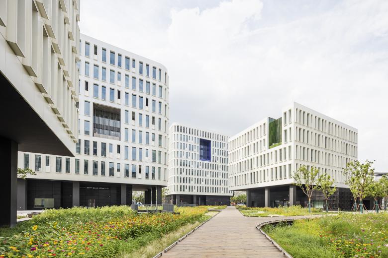 How can an office campus contribute to the life of the neighborhood in which it is located? Here, the large garden that serves as a daily setting for all the employees is also a promenade offered to the city. A diagonal crossing allows passers-by to reach from Yishan Road to Tianlin Road through the heart of a natural landscape, away from traffic. The buildings have been positioned to open up the site, making this project a lively and welcoming space, bringing nature back into the heart of the city.