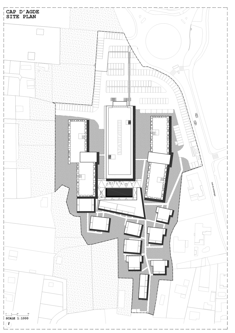 Agde, an ancient town founded by the Greeks, is now renowned as a mass summer tourism destination on the Mediterranean coast. Its wide range of accommodation options means it has become one of Europe's foremost tourist resorts. This new hotel and holiday home development will extend southwards at the extreme end of the Agde shoreline, in an area that is still relatively undeveloped and where individual housing districts predominate.