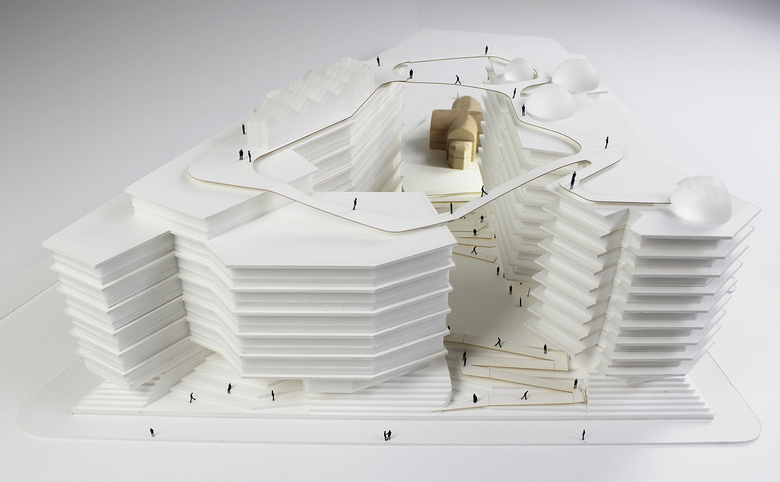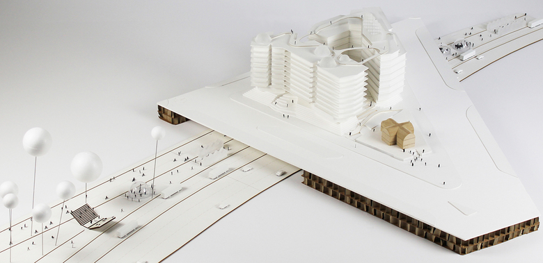Above the landscape-bridge are the units of housing and offices. Their structures have been designed to allow them to evolve and expand with the city as it progresses with its plans for regeneration.