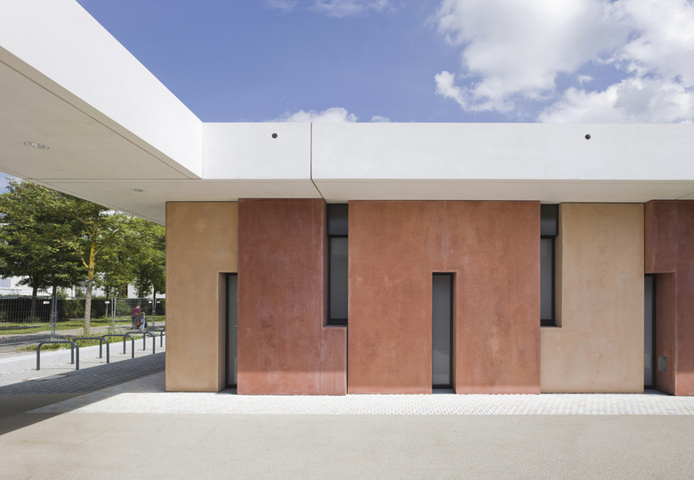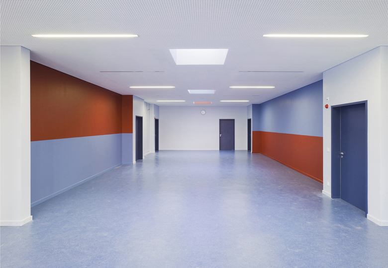 Alle Räume profitieren unmittelbar vom attraktiven Freiraum. Da die Schulnutzung in 15-20 Jahren beendet sein wird, wurden die tragenden Stützen auf ein Minimum reduziert und das Dach als massive Deckenplatte geplant, um höchste Flexibilität für eine spätere Umnutzung zu erzielen.