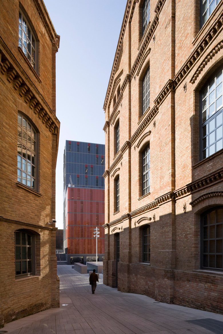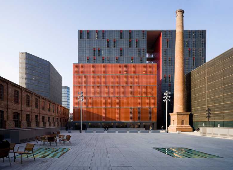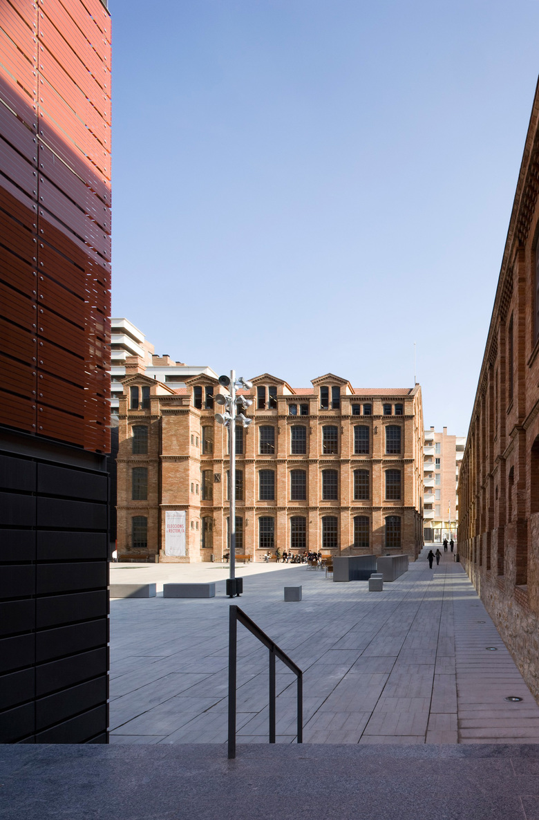 The new urban campus was built on a former factory site, around a new public square. The project involved rehabilitating and enhancing two industrial buildings and some new construction. The linear volume is cut into to offer views of the campus, and the façade comprises screen-printed glass slats, fixed or movable. The new urban square is linked with the streets, over a basement that occupies the entire site and houses the auditorium, archives and library.