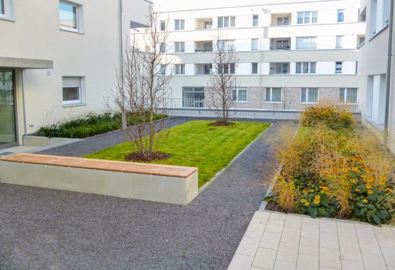 Auf dem Grundstück der ehemaligen Strickmaschinenfabrik „Terrot“ ist ein neues innerstädtisches Wohnquartier entstanden. Die alten Industriegebäude wurden, bis auf die Ausnahme des so genannten „Blauen Haus“, abgerissen und durch ein generationenübergreifendes Wohnquartier ersetzt mit ca. 112 Wohneinheiten, Pflegeheim mit Betreutem Wohnen einer Begegnungsstätte und Kita. Das vormals private und unzugängliche Gelände ist durch das Projekt „Seelberg Wohnen“ als lebendiges Quartier in den städtischen Kontext von Bad Cannstatt eingebunden. Die Wohnbauprojekte mit unterschiedlichen Angeboten für Jung und Alt gruppieren sich um einen öffentlichen Quartiersplatz. Der Platz erschließt und verbindet die angrenzenden Wohneinheiten und ist Treffpunkt im Quartier. Das Spielmodul und die markante Holzskulptur prägen den Ort. Neben den gemeinschaftlichen Flächen und Treffpunkten wurden im Freiraumkonzept für die Bewohner Wohnhöfe und private Gartenflächen realisiert.