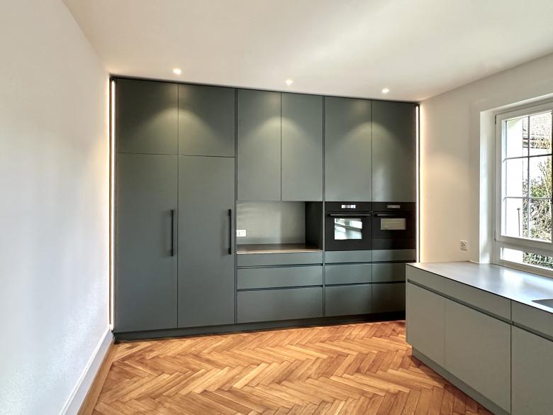 Die Innenrenovierung dieses Einfamilienhauses in Bern bewahrt den historischen Charme und verbindet ihn mit modernen Akzenten. Der geschliffene Originalparkett verleiht dem Raum zeitlose Eleganz, während die neue, puristisch gestaltete Küche einen spannungsvollen Kontrast schafft. Mehrere hochwertig renovierte Bäder sowie gezielt eingesetzte Farbakzente bringen Dynamik und Frische in das Wohnkonzept. Tradition und modernes Design vereinen sich harmonisch in dieser renovierten Villa in Bern.