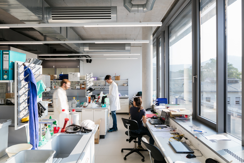 Der Neubau für das Chemische Institut der Universität Heidelberg stärkt die städtebauliche Ordnung des Campus am Neuenheimer Feld, indem der Neubau eine Sichtachse und Wegeverbindung vom Neckar fasst. Es ersetzt ein bestehendes Gebäude, das Ansprüchen an ein modernes Laborgebäude nicht mehr genügt. Ebenso wie das veraltete Bestandsgebäude ist auch der Neubau, der an gleicher Stelle errichtet wurde, an ein bestehendes “Rückgrat” angeschlossen: Dieser mehrgeschossige Gang verbindet mehrere Bestandsgebäude, die wie Arme im rechten Winkel von dem Rückgrat aus erschlossen werden. Die Gebäudearme bilden Höfe, zu denen die Mehrzahl der Räume hin orientiert ist. Die Planungsphase wurde nach Kriterien des DGNB Systems prüfend bewertet und begleitet hinsichtlich der Green Building Bewertungskriterien.