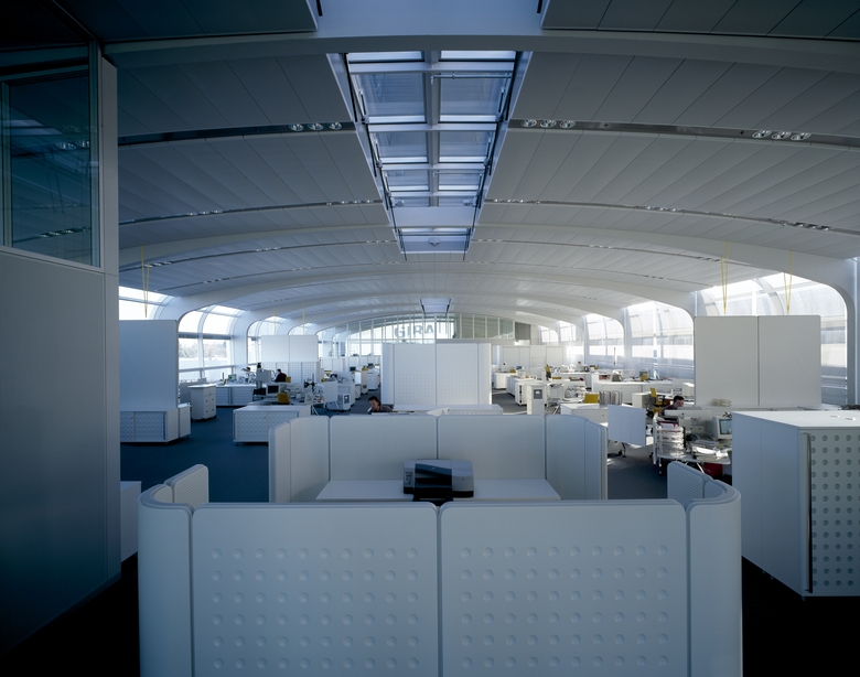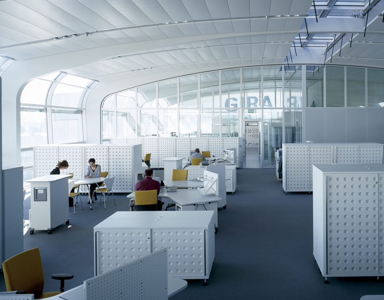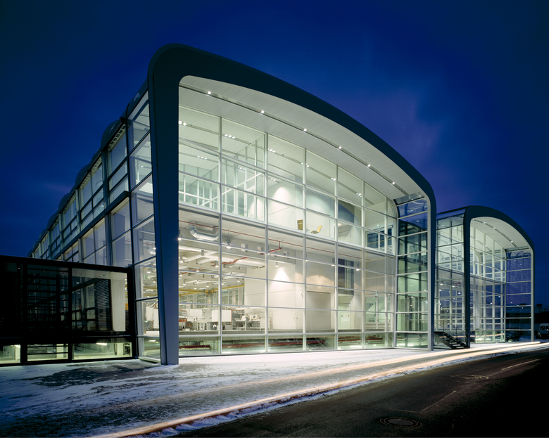 Der Standort Radevormwald dient der Firma GIRA als Hauptverwaltung und Produktionsstandort von Elektro-Installations-Systemen. Durch den Erwerb eines benachbarten Grundstückes war die Möglichkeit gegeben, am vorhandenen Standort durch Erweiterung des Werkgeländes neue Produktionsflächen zu schaffen. Ausgangspunkt des Projektes war eine Entwicklungsstudie. In Zusammenarbeit mit dem Fraunhofer Institut wurde mit der vorliegenden Planung eine optimale Ausnutzung der Grundstücksfläche unter Berücksichtigung von optimierten Produktionsabläufen – auch in Hinsicht auf weitere Aus- und Umbaumaßnahmen erarbeitet. Charakteristisch für die beiden circa 70 Meter langen und vollständig verglasten Gebäude sind die gleichwertigen Arbeitsplatzqualitäten für Produktion und Administration. Die Grundrisse sind stützenfrei, sodass in beiden Ebenen Produktionsanlagen und moderne Büroorganisationsformen organisiert werden können.