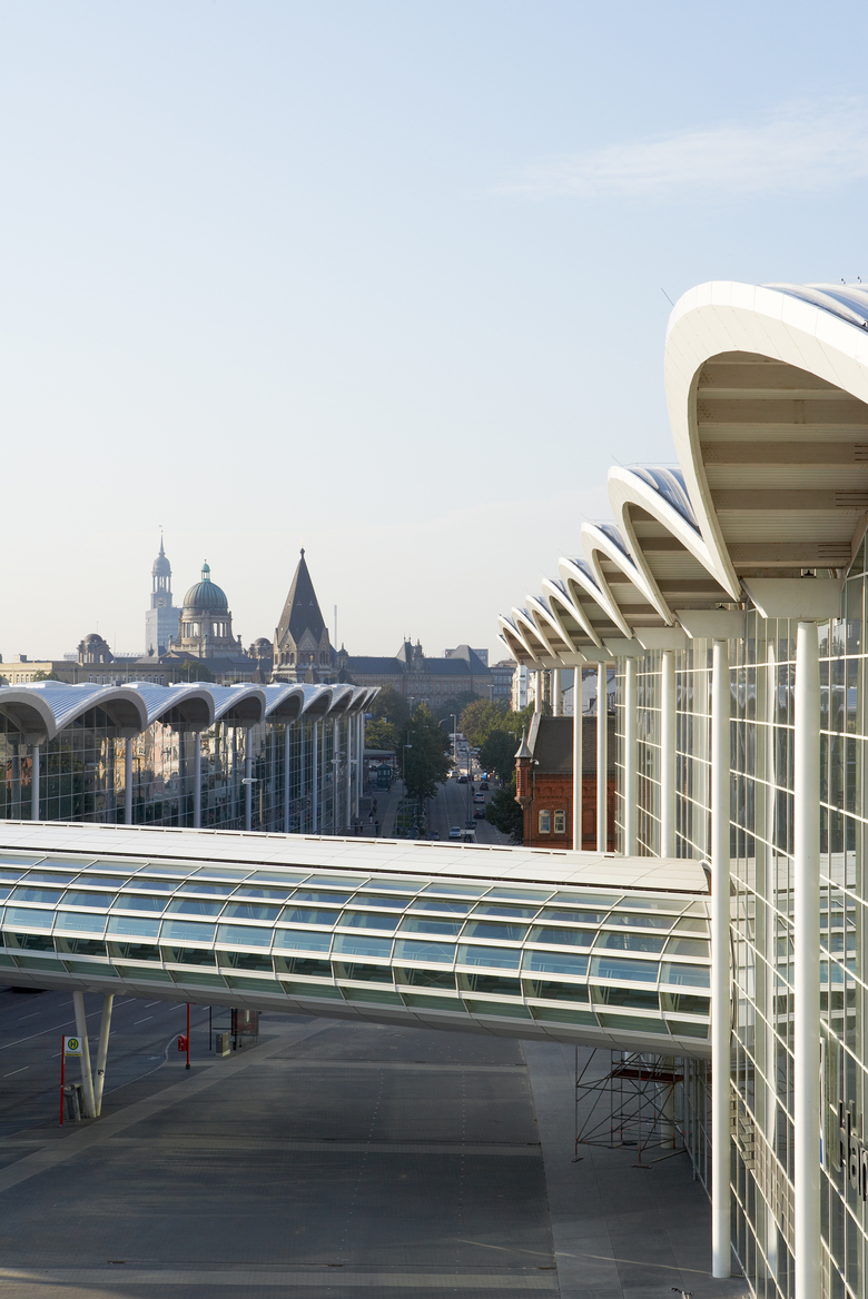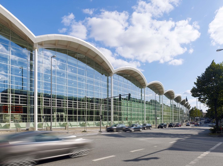 Die Neue Messe Hamburg ist in den Grundriss der Hansestadt eingewoben. Entlang der Karolinenstraße entstand ein Messeboulevard als lebendiger, belebter Stadtraum. Zentrale Verbindungsachse ist die Messe-Loggia, die als gebäudehoch verglaste Konstruktion alle Messebereiche miteinander verknüpft. Die Gliederung der Fassaden und die Traufhöhen der Dachschalen fügen sich harmonisch in die Stadt ein. Die Konzeption der Messehallen folgt einem durchgängigen, modularen Ordnungsprinzip, das ein hohes Maß an Flexibilität gewährleistet. Die Hallen werden weitestgehend natürlich be- und entlüftet, sowie ausreichend mit Tageslicht versorgt. Mit schienengeführten Trennwänden können die Hallen in unterschiedliche Größen aufgeteilt werden.