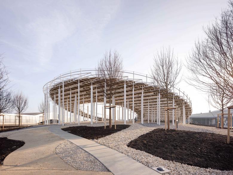 Sur la Place Cosandey, au Sud du campus EPFL, l’Agora Lombard Odier émerge entre le Rolex Learning Center et l’ArtLab sous la forme d’un grand disque qui en s’élevant du sol cherche la vue vers le lac Léman et l’horizon des Alpes. Au-dessous, appuyé sur une forêt de colonnes, le disque se transforme en canopée ombragée. Avec ses 31 m de diamètre, ces gradins destinés aux activités de rassemblement à l’extérieur peuvent accueillir jusqu’à 600 personnes.