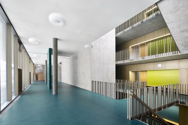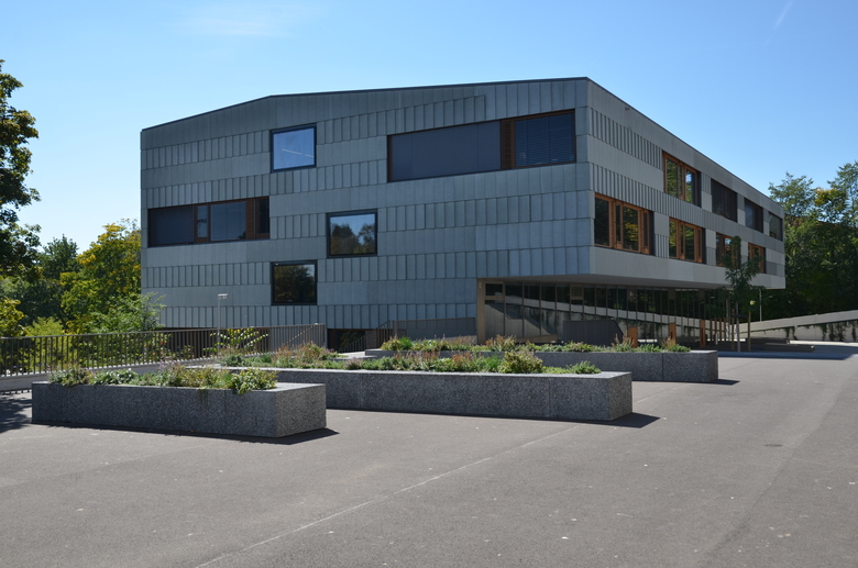 Le projet du cycle d’orientation DOSF à Fribourg se compose de deux nouveaux bâtiments abritant des salles de classe et une triple salle de sport enterrée. La structure porteuse des bâtiments est conçue en béton armé. Un système complexe de voiles drapeau avec des oirte-à-faux de 8m permet de reprendre une importante partie des charges des étages en porte-à-faux et de créer un préau couvert parcourant toute la longueur du bâtiment.