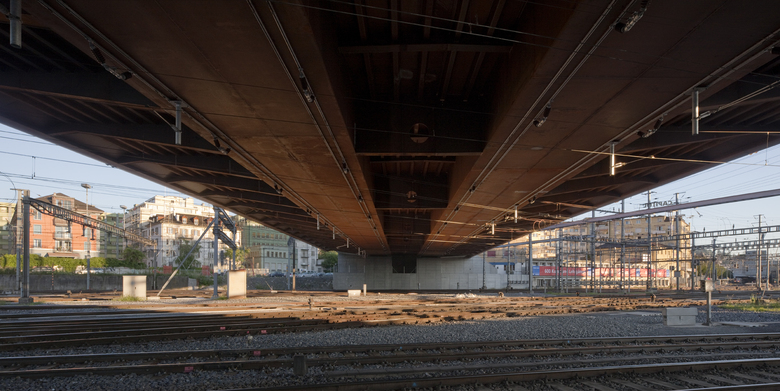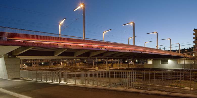 Remplaçant l’ancien pont routier de 1938, le nouveau Langensandbrücke fait le lien entre le centre ville et la périphérie. Il permet aux véhicules, aux cycles et aux piétons de traverser l’importante largeur de voies de chemins de fer en toute sécurité. Sa forme résulte de la synthèse des exigences et contraintes du site et exprime de manière intelligible les objectifs structurels et fonctionnels du projet.