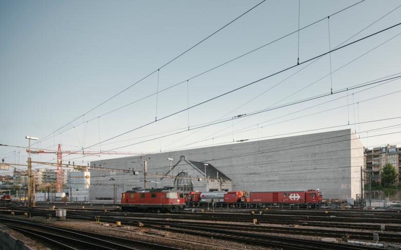 Le Musée Cantonal des Beaux-Arts de Lausanne définit un nouvel espace urbain en lien avec le passé industriel ferroviaire du site. Ce lien symbolique s'exprime dans aussi bien dans les aménagements extérieurs, qui maintiennent des rails d'époque, que dans l'édifice même, qui intègre une partie de l'ancienne halle aux locomotives. Le volume monolithique et longiligne à trois étages se caractérise à l'intérieur par des vastes espaces libérés de tout porteur intermédiaire. Le concept structural, avec un système statique de murs voiles en béton armé précontraints qui soutiennent des dalles préfabriquées de grande portée, répond à cette intention architecturale.