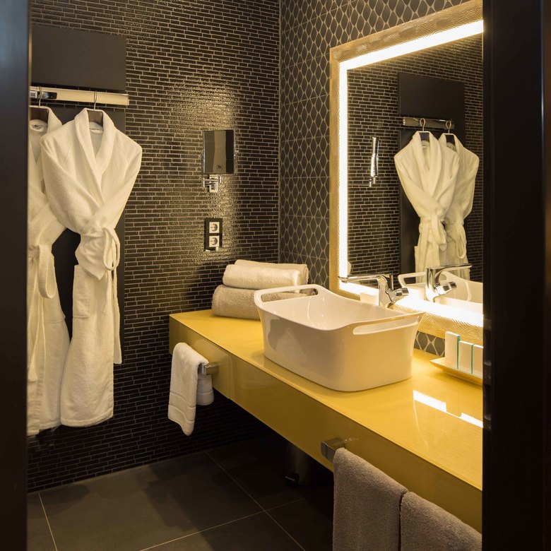 Das Besondere: Jede Zimmerart stellt ein Unikat mit individuellem Design dar und entspricht somit ganz unterschiedlichen Bedürfnissen. Peter Joehnk, Geschäftsführer von JOI-Design, erklärt das Konzept wie folgt: „Da steht man zum Beispiel in einer Suite, die für ein Business-Luxushotel in der Großstadt geplant ist, aber fünf Schritte weiter findet man sich sozusagen in einem bayerischen Ferienhotel für die ganze Familie wieder. Und dazwischen kann man sich in einer Ausstellung darüber informieren, was noch alles möglich ist und was am besten zum eigenen Hotel passt.“
