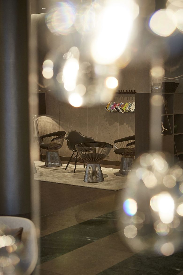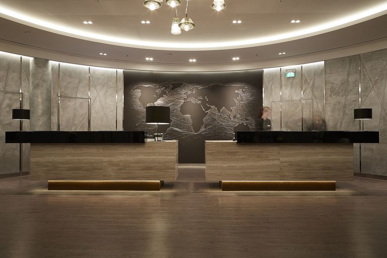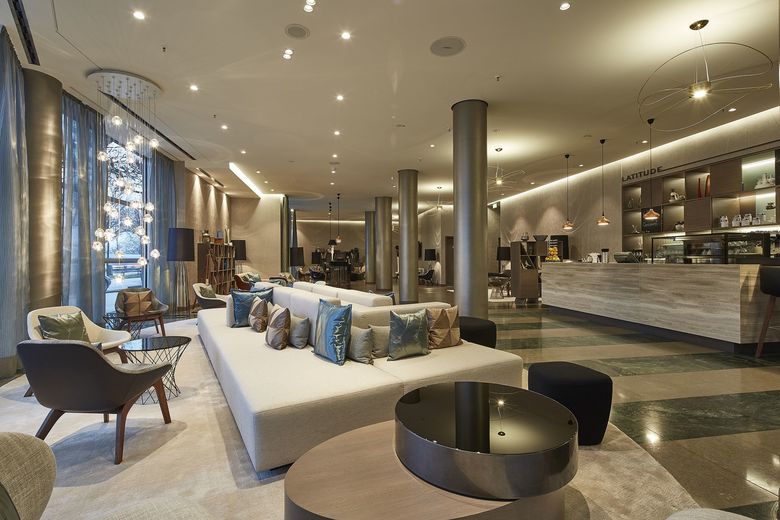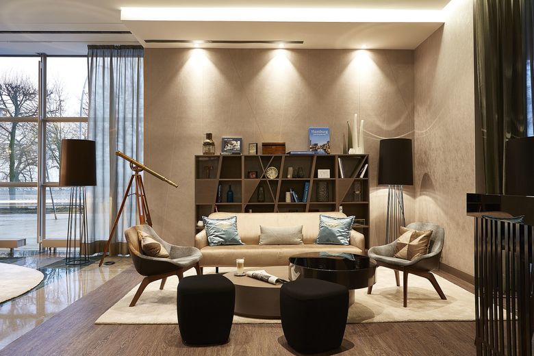 Direkt an der Außenalster gelegen, begeistert das Le Méridien Hamburg dank neu gestalteter öffentlicher Bereiche, die als so genannter HUB die Verbindung zwischen Reisenden aller Welt und Hanseaten schlagen. Entstanden ist ein kommunikativer Eingangsbereich, der zum Verweilen, Netzwerken und Snacken einlädt. Das Interior Design Konzept spielt mit Assoziationen zur Alsternähe und dem Standort Hamburg: Tänzelnde Linien, Diagonalen, Dreiecke und Prismen erinnern an die Segel und Taue der Boote auf dem Wasser. Beruhigende Naturtöne gepaart mit Grau-Beige-Nuancen werden durch hellblaue und türkisfarbene Highlights in Szene gesetzt.