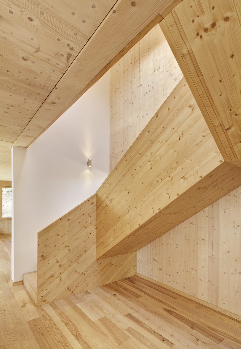 Das Gebäude wird in einer modernen Holzbauweise erstellt. Für Außenwände, Decken und Dach wird ein spezielles Holzbausystem verwendet: Thoma Holz 100 - Elemente.