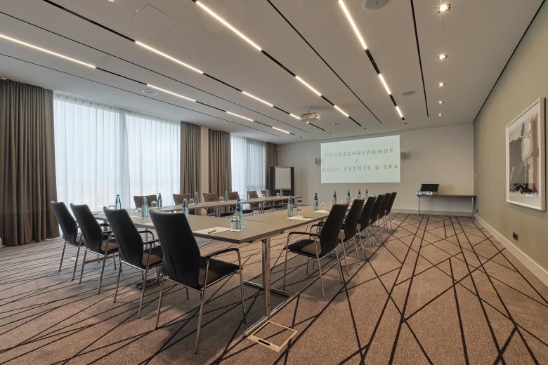 Im Öschberghof stehen fünf individuelle Räumlichkeiten mit einer Größe von 60 bis 90 qm (für 12 bis 80 Personen) im Erdgeschoss und 1. Obergeschoss sowie ein Boardroom mit fester Bestuhlung für 14 Personen im 1. Obergeschoss zur Verfügung. Der Festsaal im Erdgeschoss ist 400 qm groß und für Veranstaltungen mit bis zu 324 Personen (je nach Bestuhlung) geeignet.