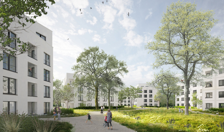 The design combines 10 000 m2 of publicly-subsidized rental housing and another 10 000 m2 of owner-occupied apartments to form a future-orientated urban development. The urban concept integrates the two different typologies into a socially diverse complex, with a landscaped park designed by Levin Monsigny at its centre.