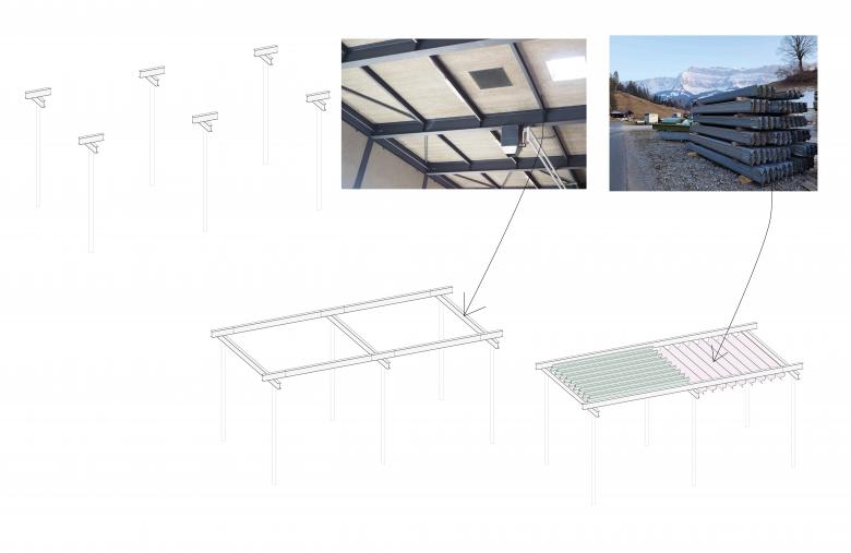 Re-Use und zirkuläres Bauen am Beispiel der Beschattung der Pausenterrassen für das Erlenmatt-Schulhaus. In Zusammenarbeit mit der Zirkular GmbH Basel haben wir die idealen Lamellen für die Beschattung in Form von wiederverwendeten Leitplanken gefunden. Es passt perfekt!