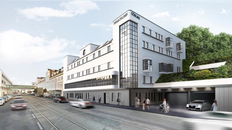 Der Zubau zur Privatklink Döbling schließt in allen Geschossen an den Bestand an und umfasst vier oberirdische sowie ein unterirdisches Geschoss. Der Bauteil zieht sich in geschlossener Bauweise der Heiligenstädter Straße entlang und wird im nördlichen Bereich ergänzt. Um die Belichtung für die Erweiterung zu gewährleisten, sind auf der straßenabgewandten Seite punktuell Lichthöfe in den Baukörper eingeschnitten.
