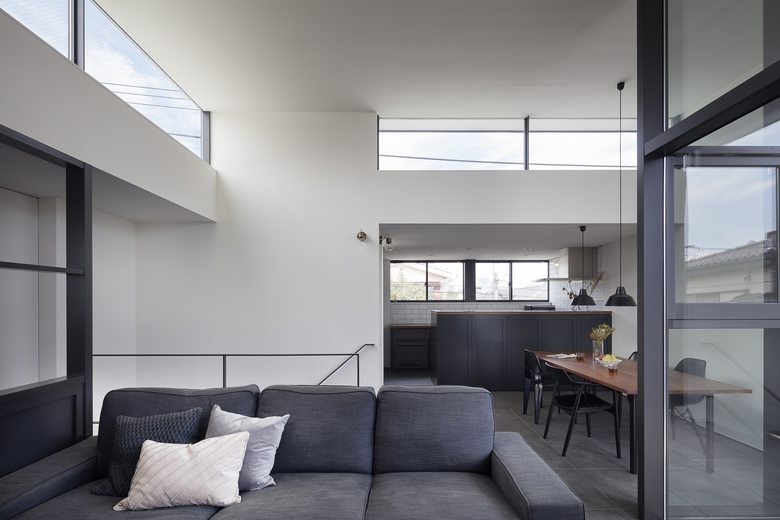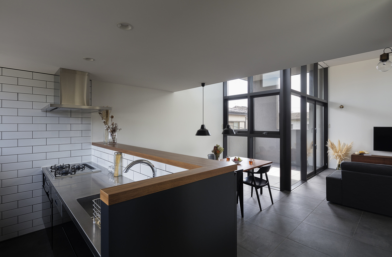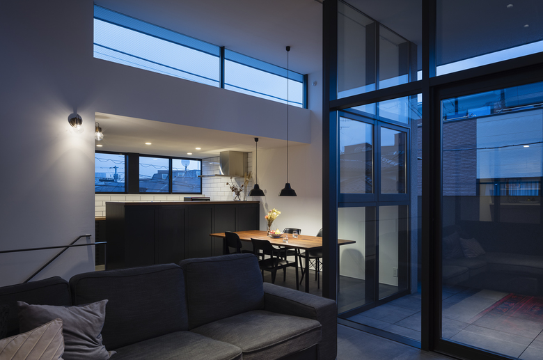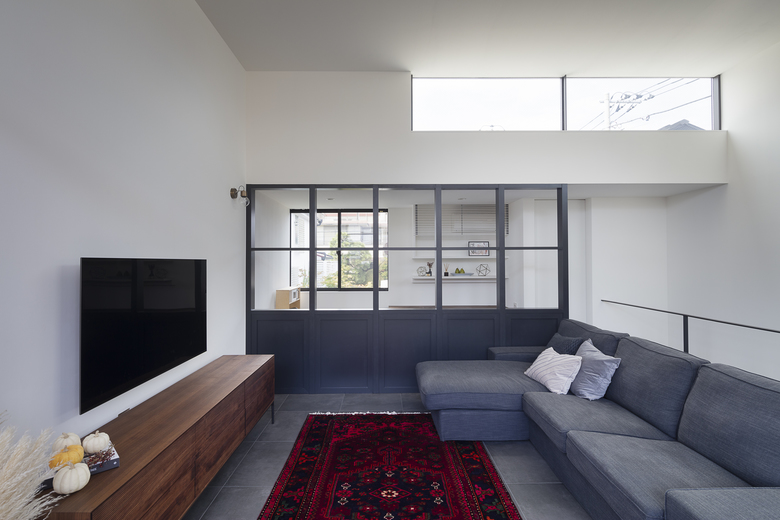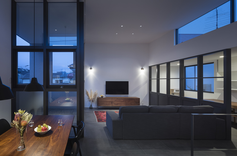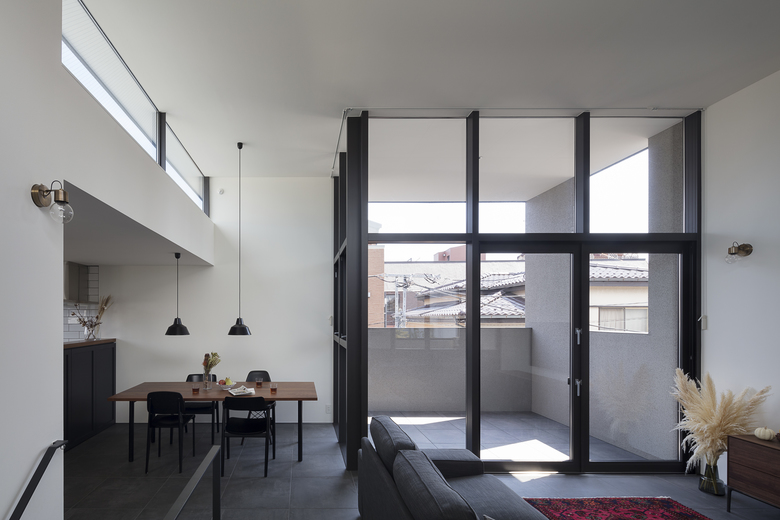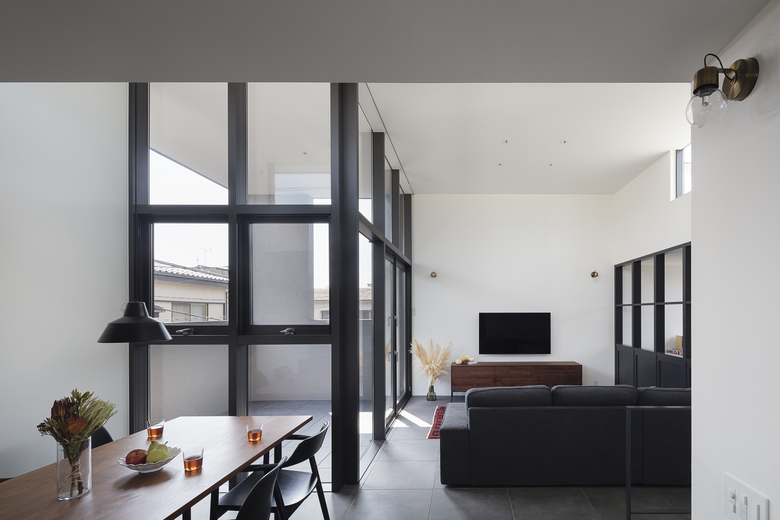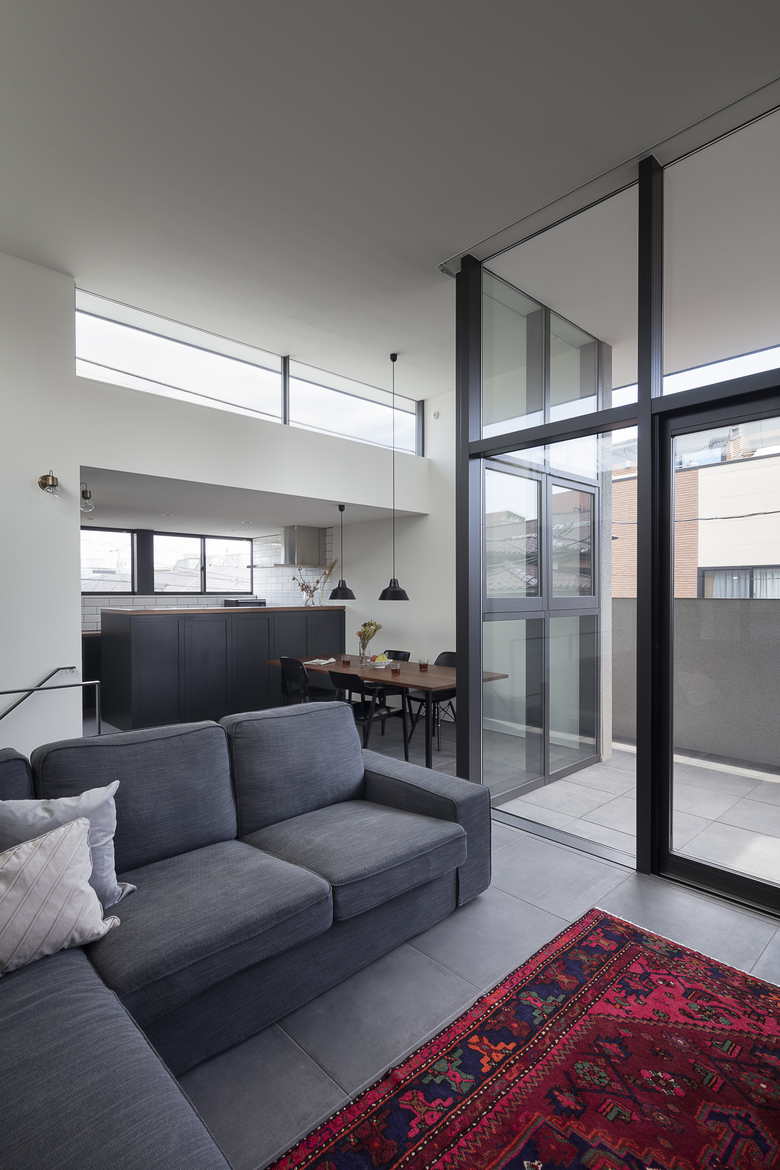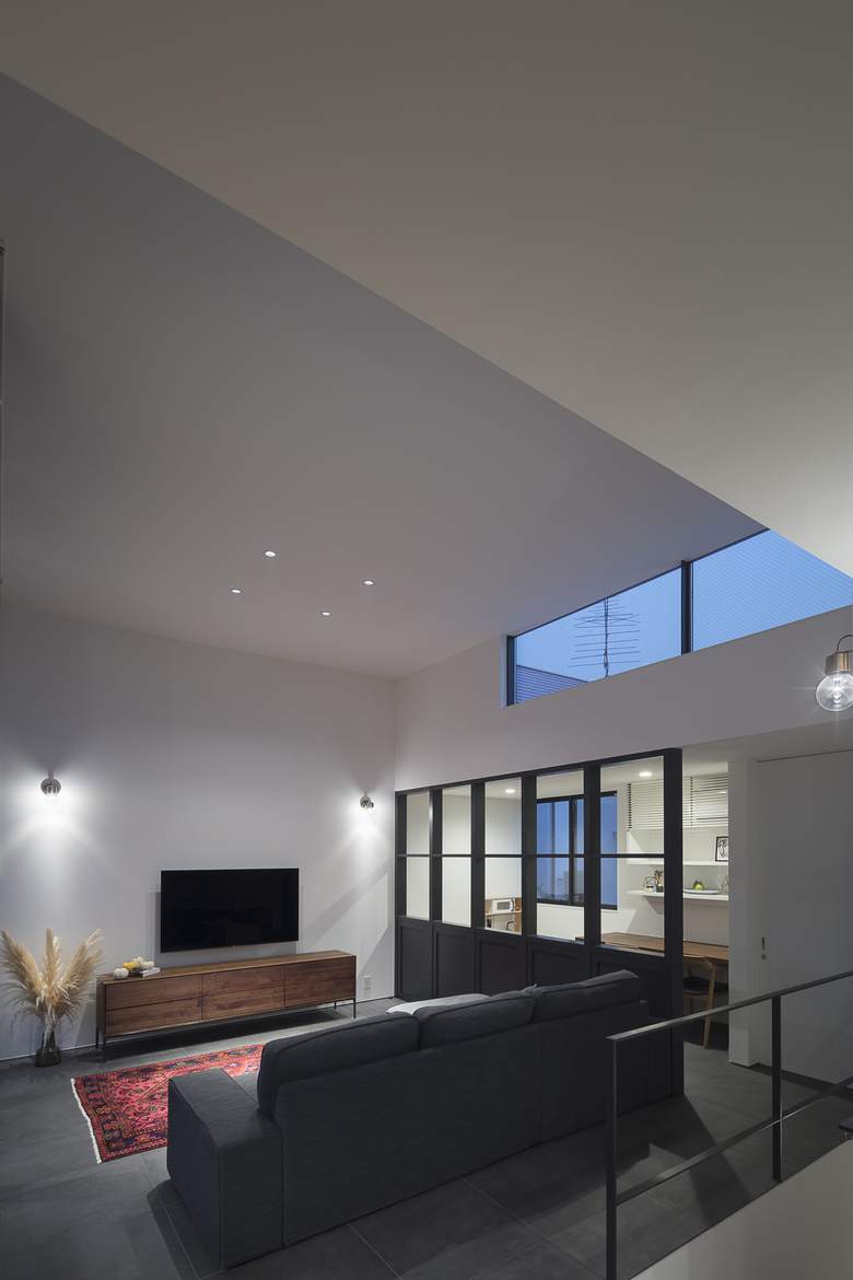 There is a large opening with a height of 3.5m connecting the space from LDK to the terrace, which achieves both a feeling of freedom and ensuring privacy.