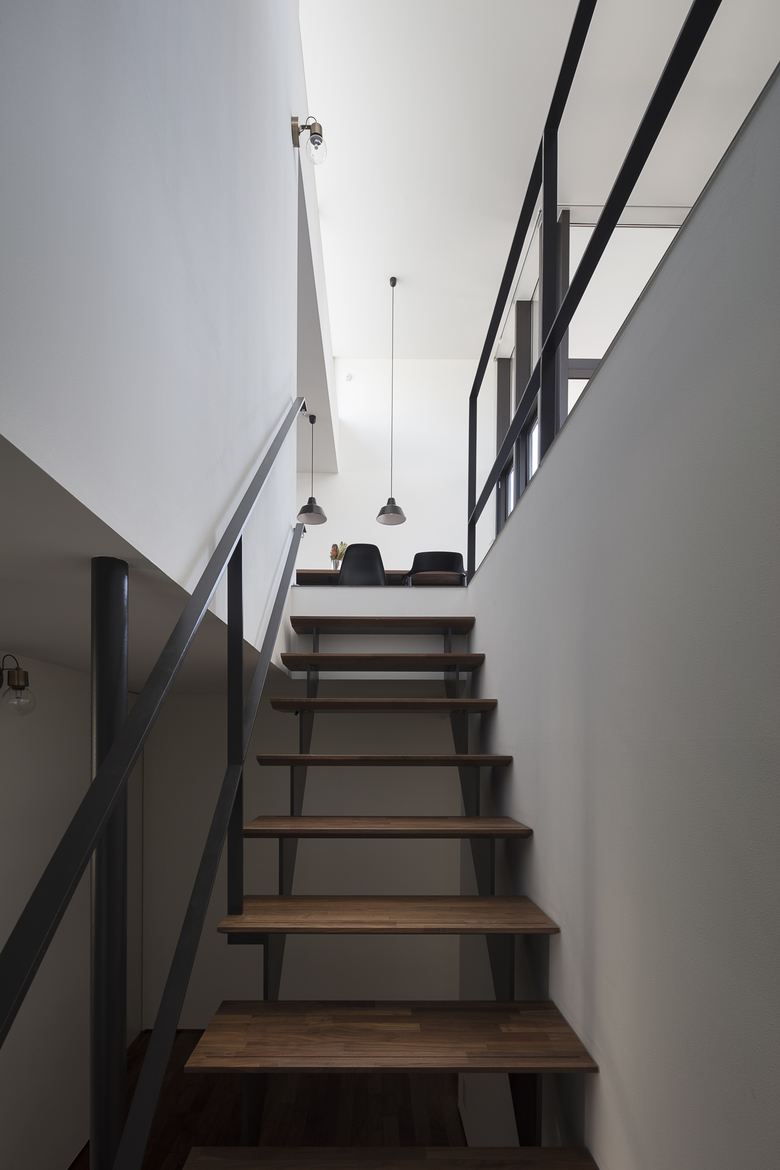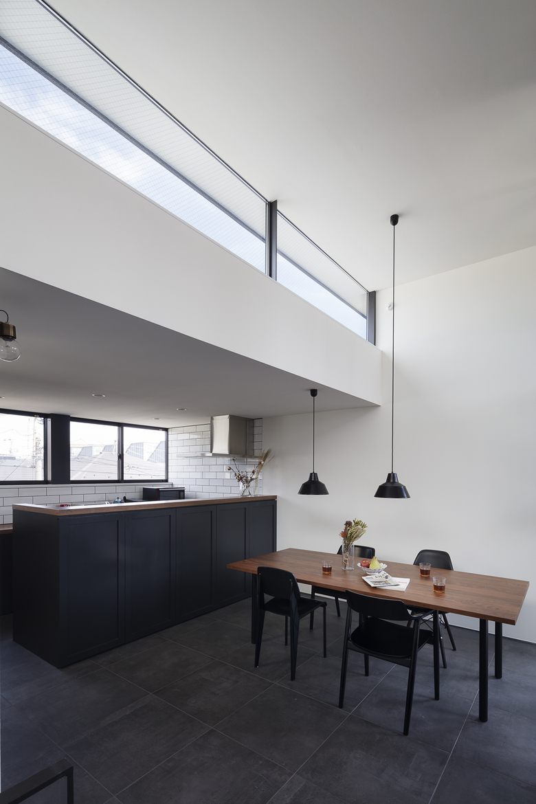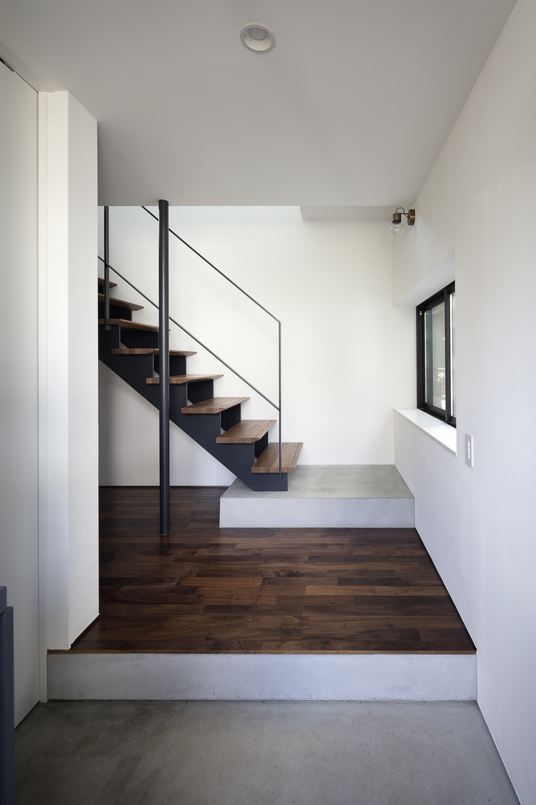 The site is located in the middle of a densely built-up area. By using a partition and different height ceiling, the LDK on the 2nd floor allows this oneroom space rich in variation.