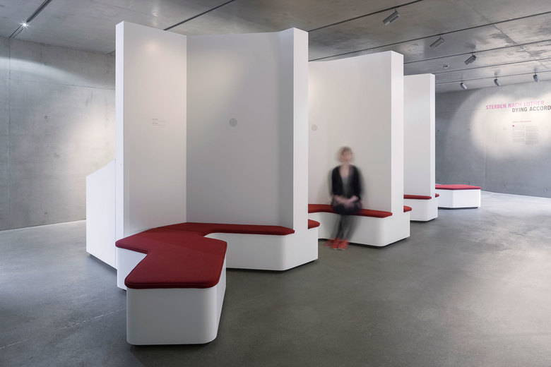Die Ausstellungsarchitektur schmiegt sich als zweite Haut an den historischen Bestand an und verleiht diesem eine hervorgehobene Bedeutung als „größtes Exponat“ der Ausstellung. Für den Ausstellungsrundgang wurde eine Atmosphäre geschaffen, welche die verschiedenen Sinne der Besucher anspricht und ihnen ermöglicht, vertiefend in die Thematik einzutauchen. Dies wird durch szenische Lichtstimmungen und die Möglichkeit erreicht, Inhalte selbst zu entdecken: sie zu sehen, zu hören, zu fühlen oder sogar zu riechen. Durch die Anbindung von Alt- zu Neubau werden die Ausstellungsstationen vom Mittelalter zur Neuzeit sowohl inhaltlich, als auch räumlich miteinander vernetzt.