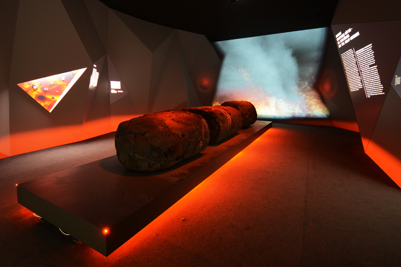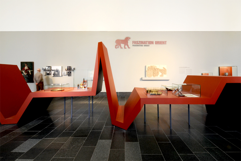 Die Ausstellung vergegenwärtigt die einstige Präsentation der Funde in Max von Oppenheims Museum in Charlottenburg und illustriert in einer bewegenden medialen Inszenierung die Zerstörung der Basalt-skulpturen in den Flammen des 2. Weltkrieges. Der Besucher erlebt im Restaurierungsraum die atemberaubende Geschichte der Wiederauferstehung der Bildwerke aus 27.000 Fragmenten und wird im großen Schlütersaal des Pergamonmuseums mit den glanzvollen Ergebnissen der Rekonstruktionsarbeit konfrontiert. Die düsteren Grautöne können gelesen werden als Zeichen für das auf den Funden lastende Geheimnis und Ihrer Zerstörung, deren Erforschung mit ihrer Auferstehung erst heute wieder in Gang kommt. Das Gold der Hintergründe und Podeste beschwört den Glanz des Palastes des Kapara herauf.