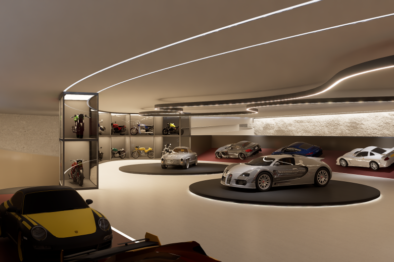Another key source of inspiration for the museum was the Mercedes-Benz Museum by UN Studio. Its dynamic circulation and strong spatial storytelling particularly informed our approach, especially the way the Stuttgart museum embeds movement into the architectural language, allowing visitors to experience the car collection as a continuous unfolding narrative.