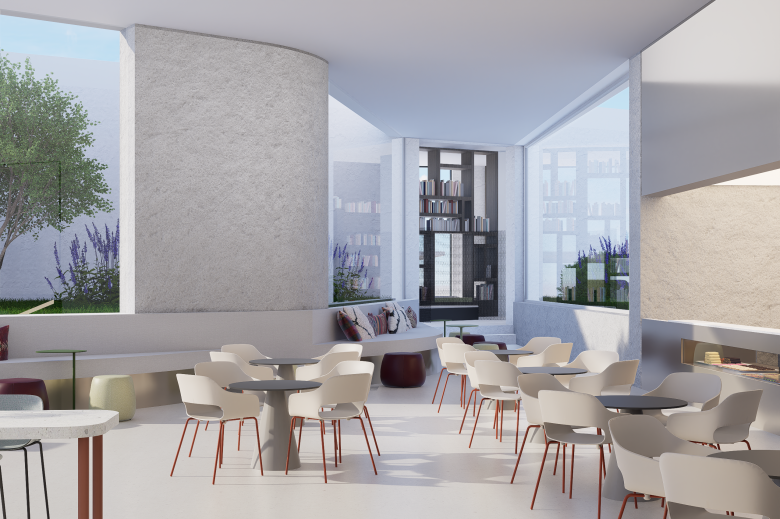 The concept begins with the landscape itself, where carefully composed topography and natural materials suck as rocky stones and native plantings lay the groundwork for the architectural language. This terrain doesn’t stop at the threshold of the building, it spills in-ward, flowing seamlessly into the museum’s main space. Stones, textures, and vegetation patterns are carried through into the interior, blurring line between exterior and interior and immersing visitors in a tactile, grounded experience from the moment of arrival.