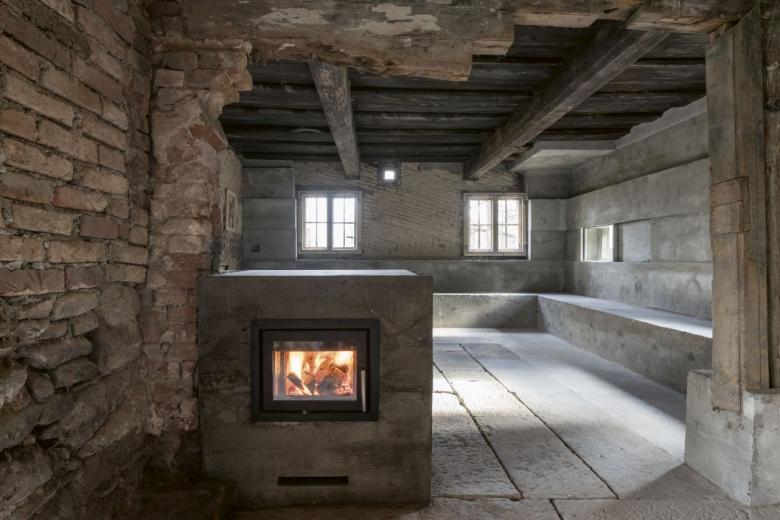 Im Haus sind die notwendigsten Dinge: ein Ofen, ein Herd, ein Tisch, ein Bett, ein Bad, eine Speis, WLAN und Bücher.