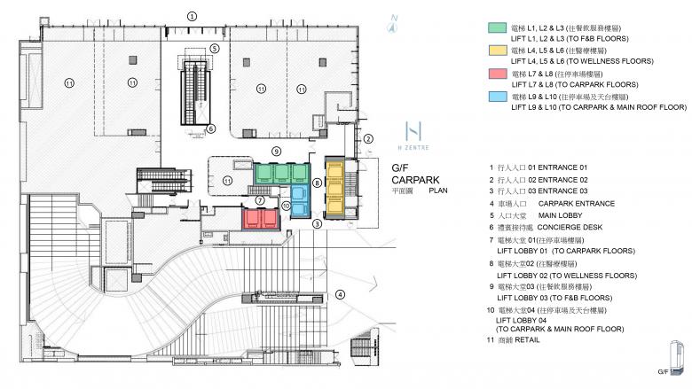 H Zentre is a unique custom designed and built 20 levels vertical tower catering for the wellness and health industries in Hong Kong. It is located at the heart of Tsim Sha Tsui. The project consists of a 2 levels retail podium catering to beauty products, and 10 floors of vertically stocked medical and beauty clinics. 5 floors of F&B facilities on the top compliment these functions.