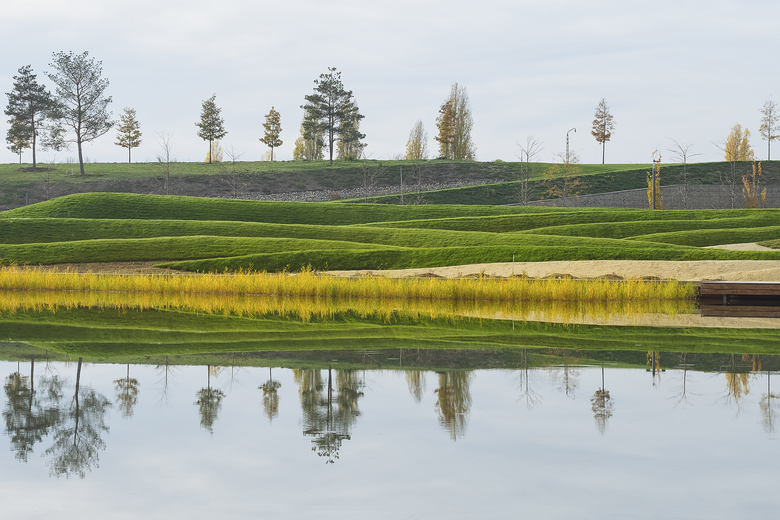 Auf der Sommerinsel in Heilbronn öffnet mit der Bundesgartenschau 2019 einer der ersten 3D-generierten und gebauten Landschaftsparks, der die Formen von Moränen, Dünen und Sandlandschaften vereint.