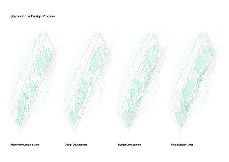 Etwa 300 Jahre später haben wir auf aktuelle technische Hilfsmittel Zugriff, um in der zeitgemäßen Schaffung eines Landschaftsparks zu einem organischen Ergebnis zu gelangen. Nach Regeln, die die Natur vorgab, ließ das LOMA-Team den Computer die vorgefundene und auf dem Areal unterschiedlich verteilte Erde mit Hilfe der 3D-Software zu einer bis zu sechs Meter hohen Moränen-, Dünen- und Sandlandschaft verformen. Der Designprozess konnte jedoch nicht nach dem Prinzip des „freien Entwerfens“ weitergeführt werden, sondern war, in Abhängigkeit mit der Programmiersprache, streng regelbasiert. Diese anfänglich als Limitation (designing with constraints) empfundenen Vorgaben wurden im weiteren Planungs- und Bauprozess als nützlich und konsistent empfunden.