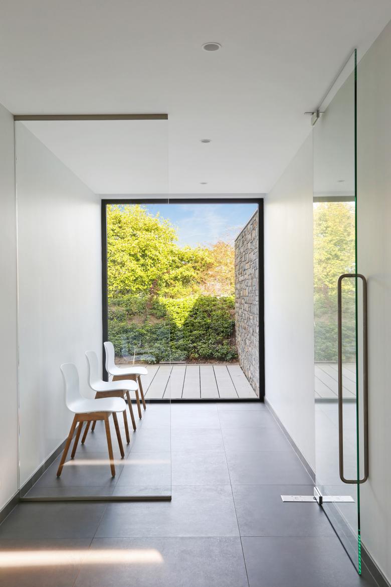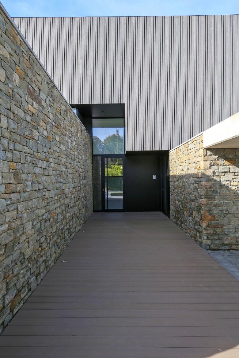 Il se caractérise par certains châssis totalement invisibles (pas d’adaptation de modulation devant les baies) ainsi que des surfaces noires horizontales et verticales pour les volumes extérieures « creusés » dans la masse.