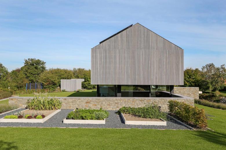 Les murs en pierre privatisent l’habitation côté rue et préservent les pentes du terrain naturel.