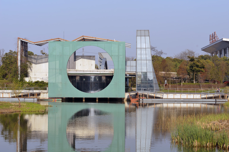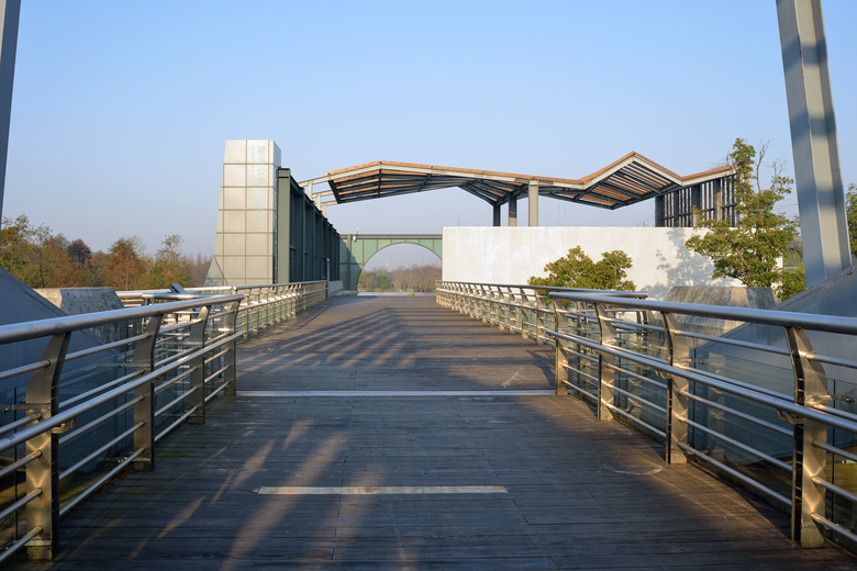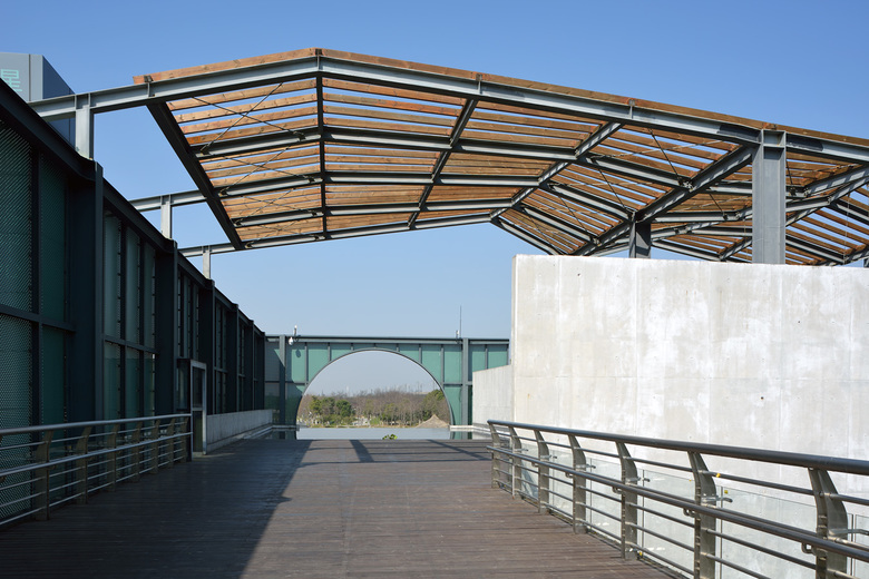 Instead of grabbing attention to its own architectural form, an ideal visitor center should first highlight the contents of the destination to entice visitors into continuing their exploration of the site. Xingxi Park is based on a rational strategy that converts a wasteland, merely glanced over by passersby, into a weekend leisure space for urban residents. If the former is common along highways in the land-rich US, the latter represents a pragmatic solution to the scarcity of land in high-density cities of the Yangtze River delta. The Park also has a straightforward landscape design. Rather than mimicking the Suzhou classical garden style or relying on amusement park rides, the design simply connects the many existing fish ponds and rivers to form a strip of wetland with plants typical of local rural areas. The three-kilometer-long linear plan fittingly accommodates several slow traffic systems, including hiking, biking (7 kilometers long), boating, and a planned horse carriage route. These inexpensive facilities support favorite activities of the majority of residents in today’s Chinese industrial cities.