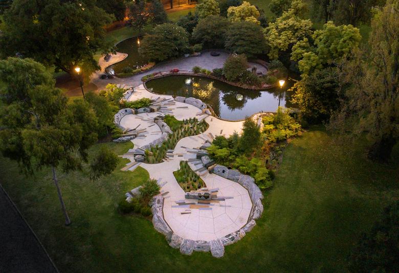 For this reason, the design has evolved to become a ‘garden memorial’. This strategy differs from other memorials in Melbourne’s parklands, which are typically individual sculptures or objects placed into the larger parkland scene.