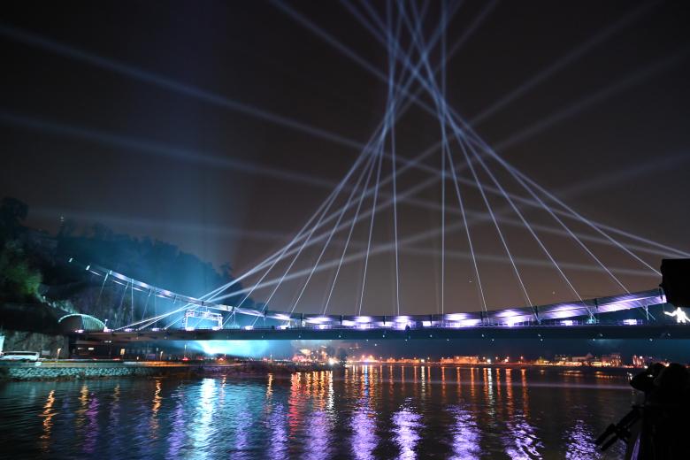 Der Überbau besteht aus einer Stahl-Verbundkonstruktion, mit einem zentralen Stahlhohlkasten und gevouteten Stahlquerträgern im Abstand der Hänger. Die Tragseilbündel bestehen aus jeweils zwölf parallel geführten, vollverschlossenen 145 mm Spiralseilen. Die Hänger wurden ebenfalls als Spiralseile geplant und weisen einen Durchmesser von 95 mm auf. Die Verbindung der Hänger mit den Tragseilen erfolgte über als Gussteile hergestellte Seilklemmen.