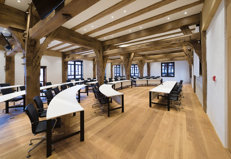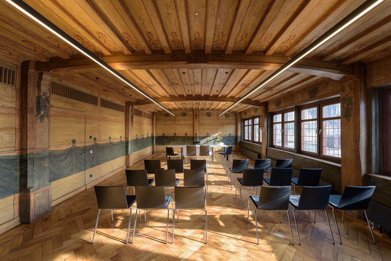 Kompletter Rückbau der während früherer Umbaumaßnahmen eingebauten, nicht historischen Sekundärtragwerke (wie z.B. Stahlabfangungen, Stahlbetondecken) und Reaktivierung des Tragwerks mit seinen historischen Tragelemente zur Lastabtragung. Dabei Sanierung von Teilen der Holzkonstruktion, insbesondere an den Stützen im Erdgeschoss.