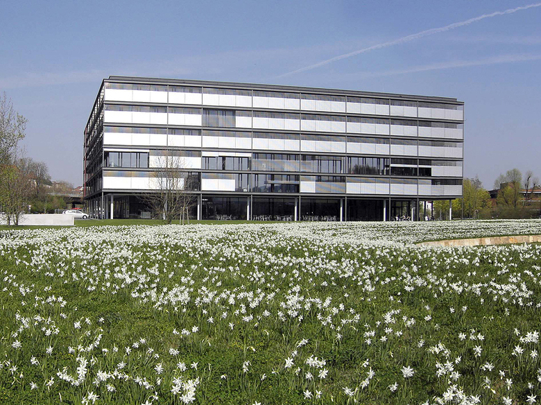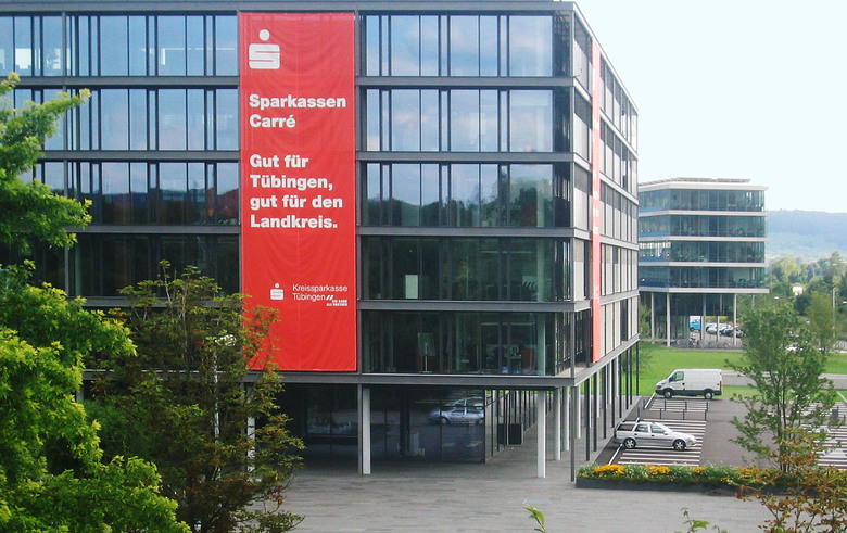 Neubau Verwaltungsgebäude der Kreissparkasse Tübingen mit sechs Obergeschossen und einem Untergeschoss mit Tiefgarage. Atriumsbau als Stahlbeton-Skelett-Konstruktion mit weitgespannten Flachdecken. Schleuderbeton-Stützen aus hochfestem Beton.Überdachung Atrium mit freitragendem Stahl-Trägerrost.