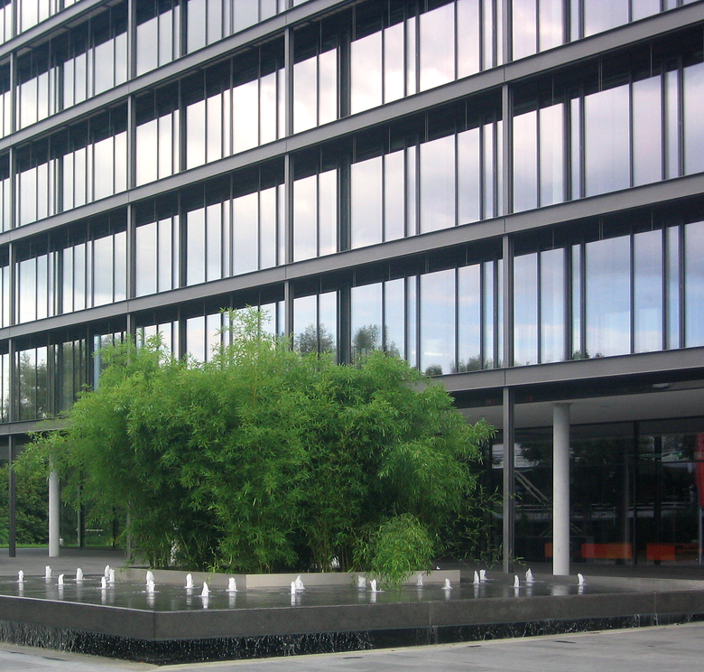 Untergeschoss als weiße Wanne mit Gründung auf Großbohrpfählen. Betonkernaktivierung der Geschossdecken für Heizung und Kühlung. Nutzung Geothermie über die Gründungspfähle.