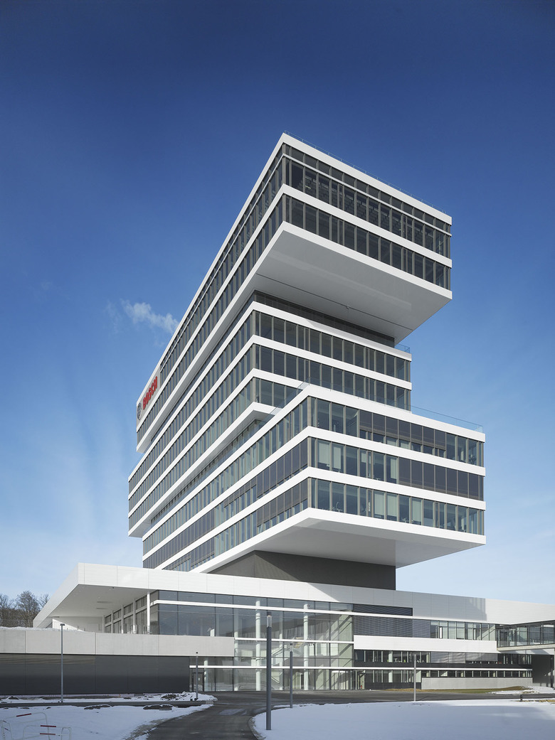 Neubau des Zentralgebäudes auf dem neu entstandenen Forschungscampus der Robert Bosch GmbH. In dem Gebäude sind nahezu sämtliche Infrastruktureinrichtungen für den Forschungscampus untergebracht. Weiterhin sind Tagungsräume bis 350 Sitzplätze, Labore und Forschungsräume, Werksfeuerwehr, Sport- und Vortragshalle, Arztpraxis mit Physiotherapeut und eine spezielle Denk- und Ruhezone für die ca. 1.500 Spitzenforscher untergebracht. Das Gebäude soll durch den weithin sichtbaren und architektonisch herausragenden Hochhauskern die innovative Firmenphilosophie und die Transparenz des Unternehmens widerspiegeln.