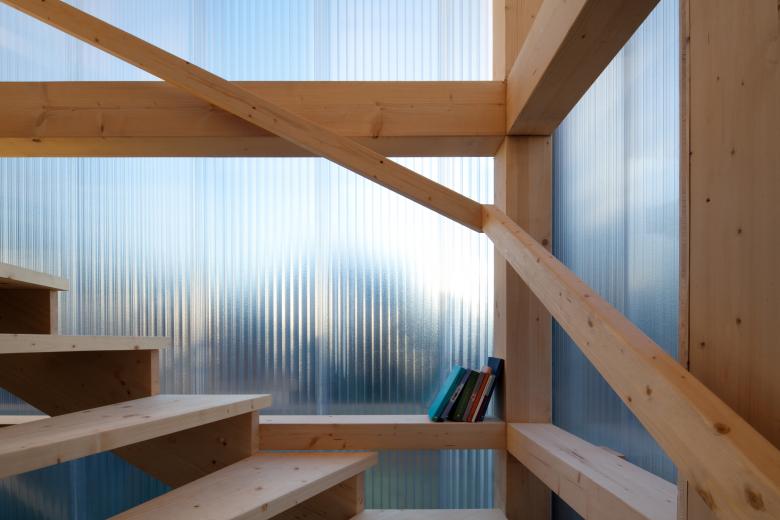Neubau eines Wohnhäuschens auf Stelzen für eine vierköpfige Familie im Umfeld der historischen Strandbadsiedlung in Klosterneuburg. Die Lage in der Nähe zur Donau mit häufig auftretenden Überschwemmungen hat in dieser Gegend einen eigenen Gebäudetyp hervorgebracht, der als einfache und erschwingliche Bauaufgabe von jeder Generation neu interpretiert wird.