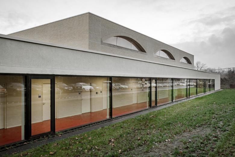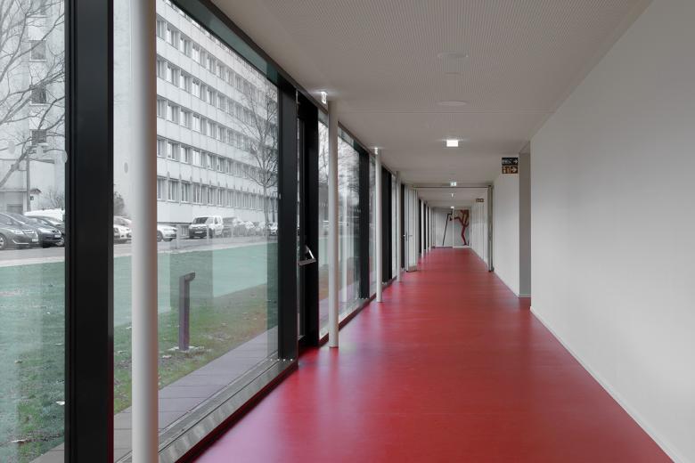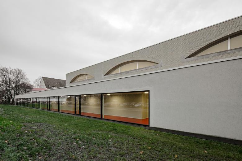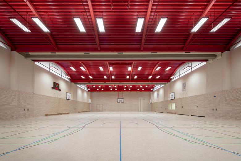 Der Sporthallenbau ergänzt das denkmalgeschützte Ensemble des Hans-und-Hilde-