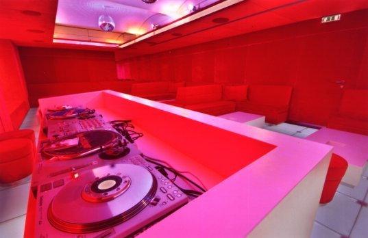 Die Farbe Rot, meist in Verwendung samtbezogener Flächen, zieht sich als verbindender Baustein durch das Etablissement, wird zum Wandelement oder Sitzmöbel. Als starken Kontrast dazu wurde ein weißer Lichtboden gewählt, die wichtigsten Möbelstücke wie die lang gestreckte Bar und das DJ- Pult sind ebenfalls in weiß gehalten und stehen als strahlende Punkte im Raum. Spiegelelemente an Wand und Decke tragen zur Komplexität des Raumes bei - kurzfristige Zeitreisen in die Zeit der 70 er Jahre sind nicht ausgeschlossen, futuristisches Design inklusive.