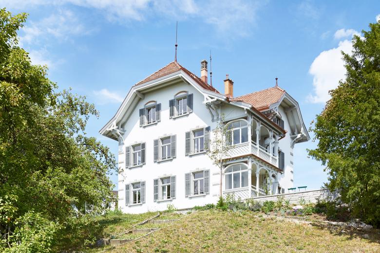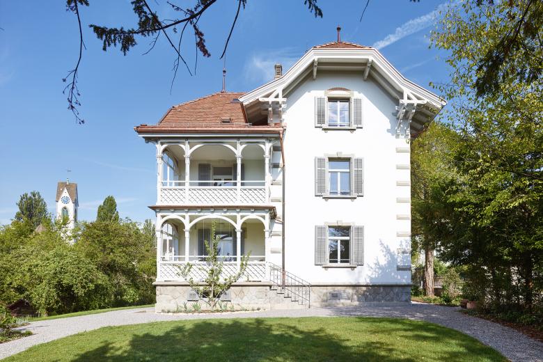 The listed Haus Zur Sommerau in Uetikon is situated on a ridge in the immediate vicinity of school buildings, a community centre and the Uetikon Kirchenhügel. The property is defined by the large front garden with its bordered, circular “Brezelwegen”, garden beds, fences and historical garden gates and is a reminder of the prestigious buildings of the upper classes.