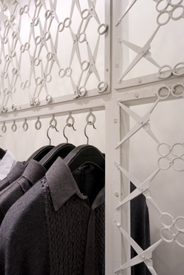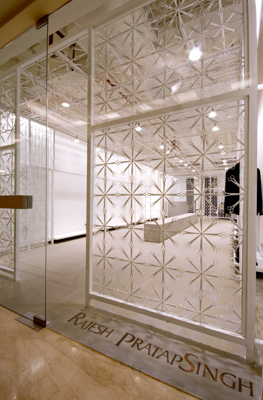 Situated in a high end mall in Delhi, this store houses the prêt collection of Rajesh Pratap Singh –a designer known for his impeccably cut, artisanal garments that stand apart because of their faultlessly clean lines and careful detailing. That is where the design inspirations of the store came from – to use a scissor, the tailors’ tool as a metaphor and create a space that had a simple yet distinct design.