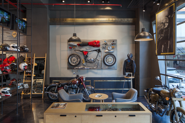 Studio Lotus was brought on board to create a unified retail identity and experience for Royal Enfield in line with their new brand positioning based on the idea of ‘Pure Motorcycling’; to create an engaging, immersive environment which will familiarize the customer with the rich legacy of the brand while providing a world class retail experience.