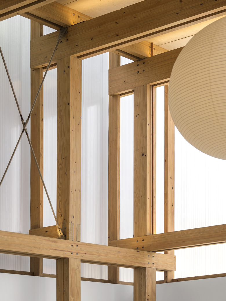 Contrasting with the “straightness” of the metal structure of Vol.A and the brutalist exposed concrete of Vol.B, Vol.C seems to float off the ground gently, like a Japanese lantern.